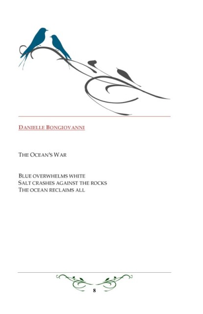DANIELLE BONGIOVANNI THE OCEAN'S WAR BLUE OVERWHELMS WHITE SALT CRASHES AGAINST THE ROCKS THE OCEAN RECLAIMS ALL 8
